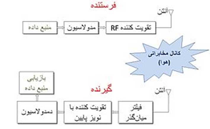 نمایش شماتیک اجزای یک سامانه مخابره بیسیم.